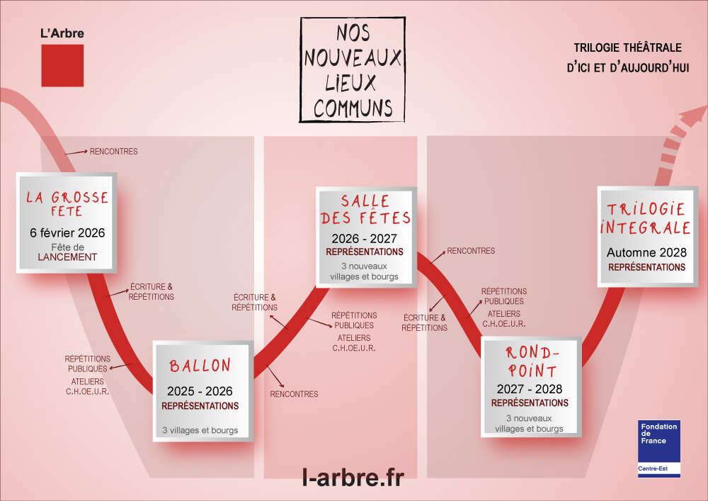 Dans le cadre d’un appel à initiatives visant à défendre l’ancrage d’artistes en milieu rural, l’Arbre a reçu le soutien de la Fondation de France pour créer localement (centre et nord-Isère) une trilogie théâtrale de 2025 à 2028, ayant pour thème la campagne : ses transformations, ce qui s’y vit, ce qui s’y joue.